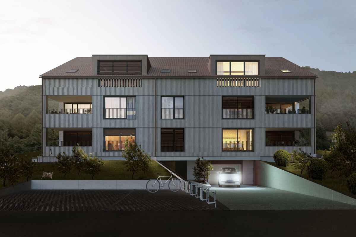 Im idyllischen Rheindorf Hemishofen entsteht mit dem Projekt Wolkestei ein Mehrfamilienhaus mit nur sechs exklusiven Eigentumswohnungen. Klare Architektur, nachhaltige Holzfassade und grosszügige Grundrisse schaffen ein Zuhause, das Moderne und Natur perfekt verbindet.